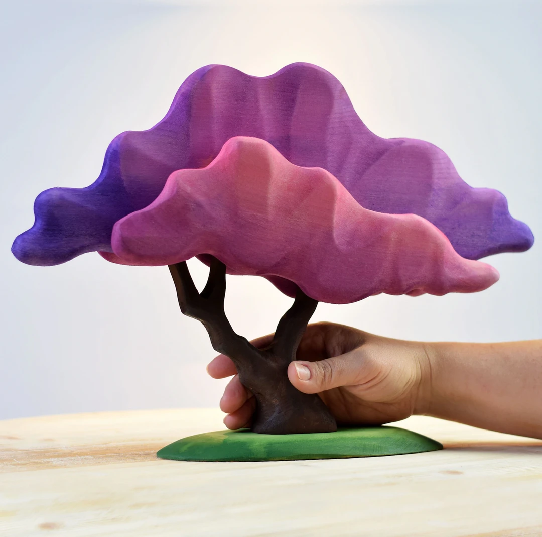 Handmade from linden wood and painted with non-toxic paint, these large trees are connected with wooden pegs and can be disassembled and reassembled easily.Â