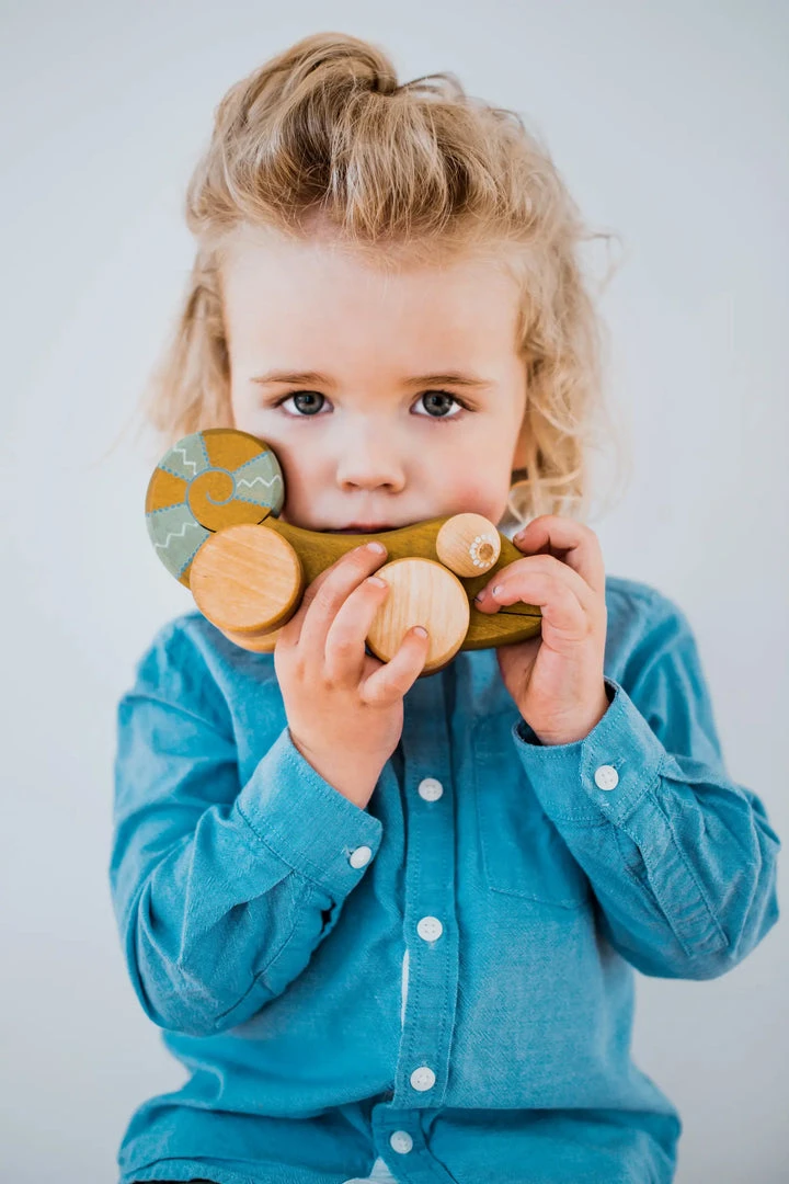 Lovingly handcrafted from natural materials, the Toy Chameleon is a safe, durable and colorful toy. Classic and timeless, this little wooden playmate makes the perfect addition to any toy collection.