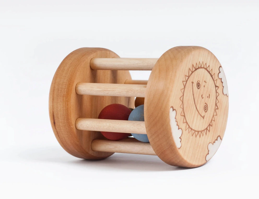 Lovingly handcrafted from natural materials, the Baby Rattle is a safe, durable and colorful toy. Classic and timeless, this little wooden playmate makes the perfect addition to any toy collection.