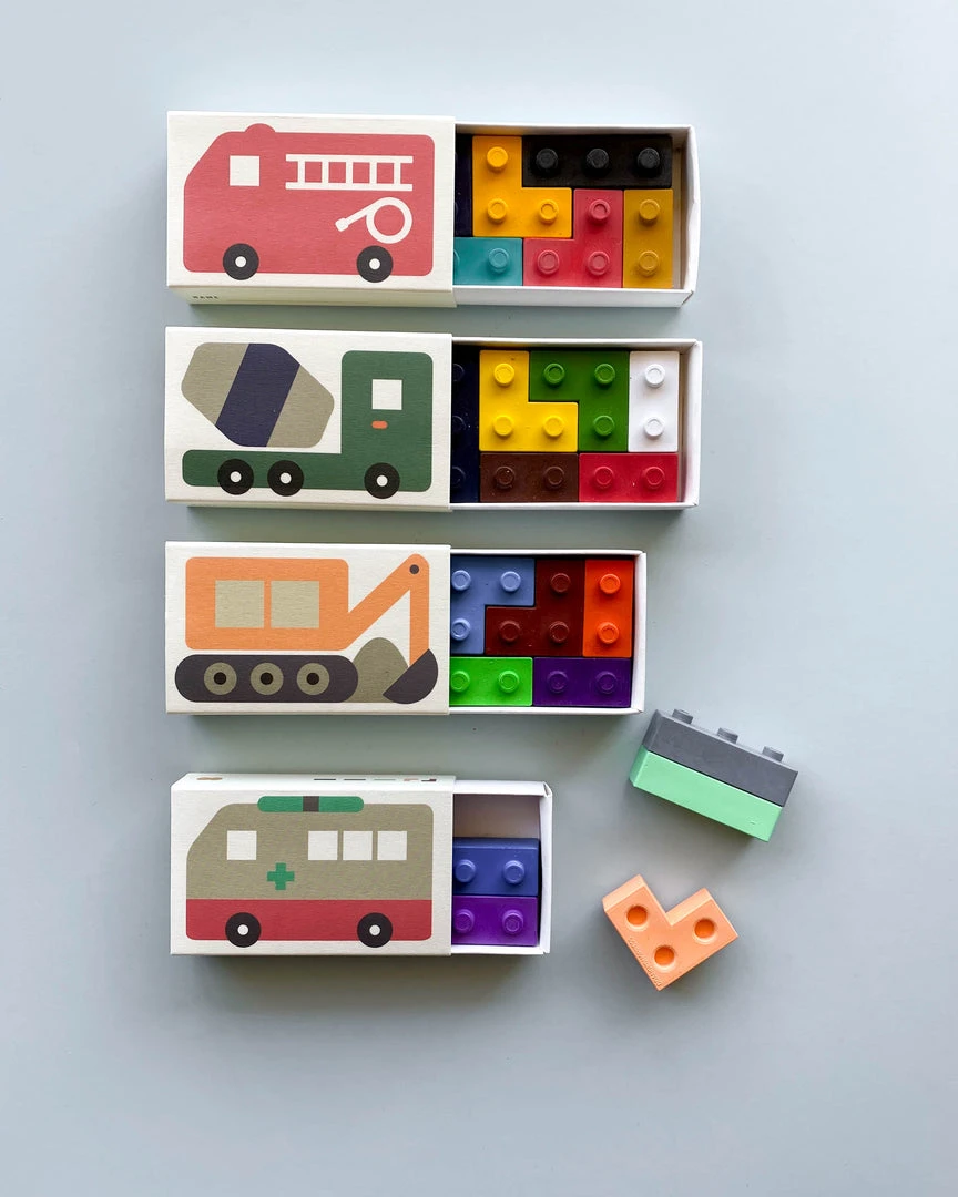 Made from natural bean wax, these lego like crayons are non-toxic and safe.