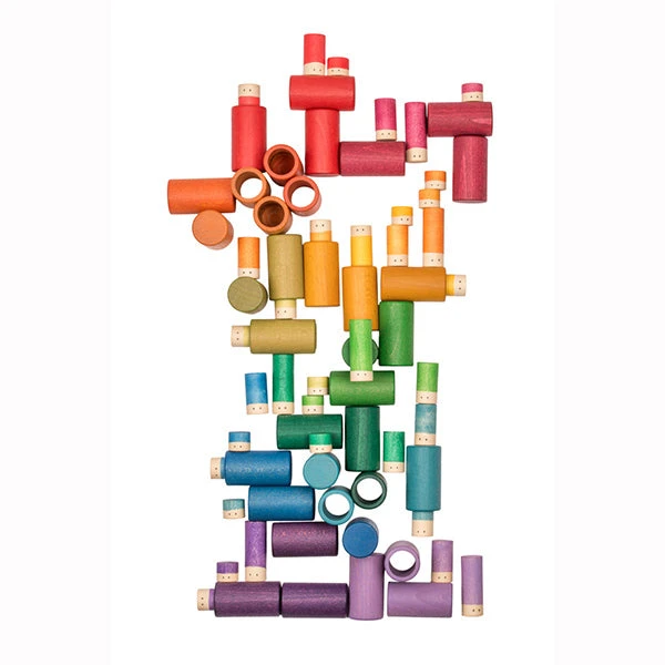 A wonderfully imaginative collection with endless play possibilities, this features 36 charming Lola figures in 12 colors and 3 sizes, along with beakers and solid and hollow tubes in matching tones. Stack them, sort them by size or color, or just unleash your imagination and play!