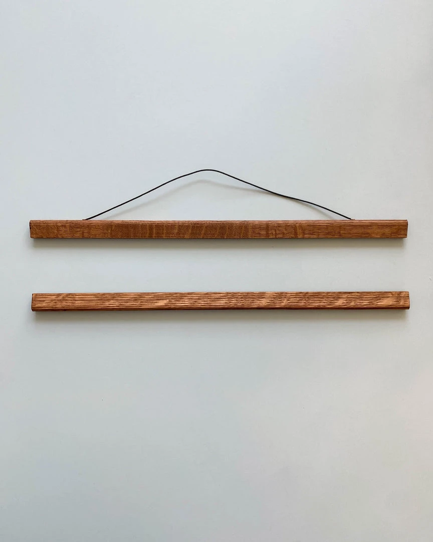 AÂ contemporary alternative to displaying your artwork around your home. This magnetic wooden poster hanger is designed and made in England from natural oak. The minimalist design has an innovative magnetic strip with a routed oak hanger, making fitting and rotating your canvas prints and art prints hassle free…no holes or screws!