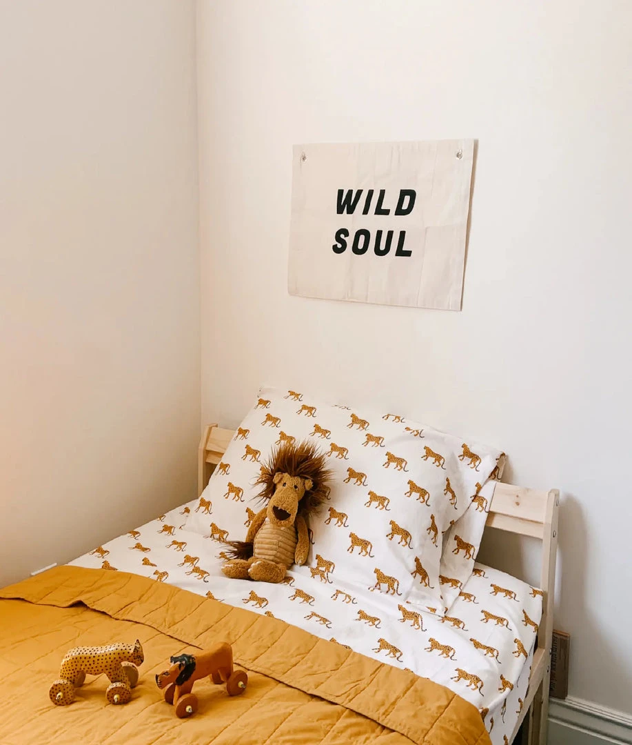 Sewn and screen printed by hand on natural canvas by Kenyan artisans.