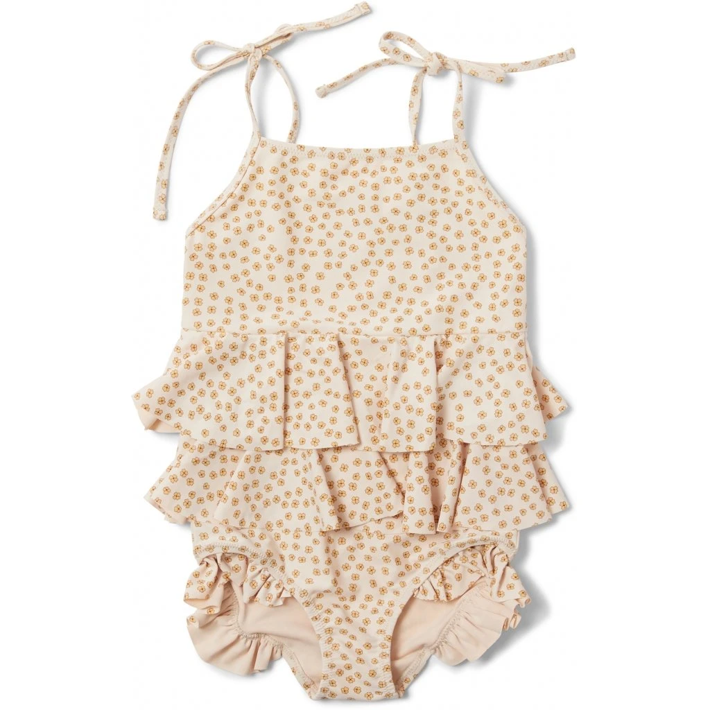 A pretty little swimsuit with frills and spaghetti straps