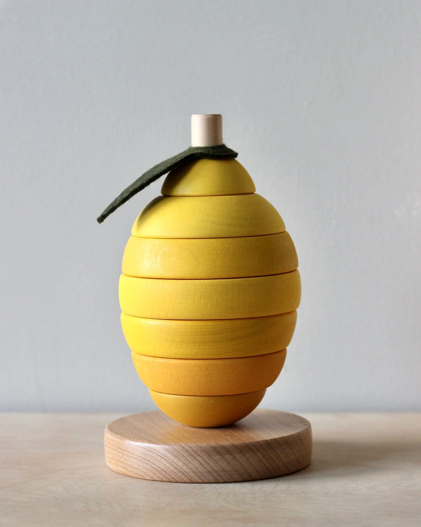 A gorgeous wooden lemon stacker toy, perfect for a little play session or room decor.