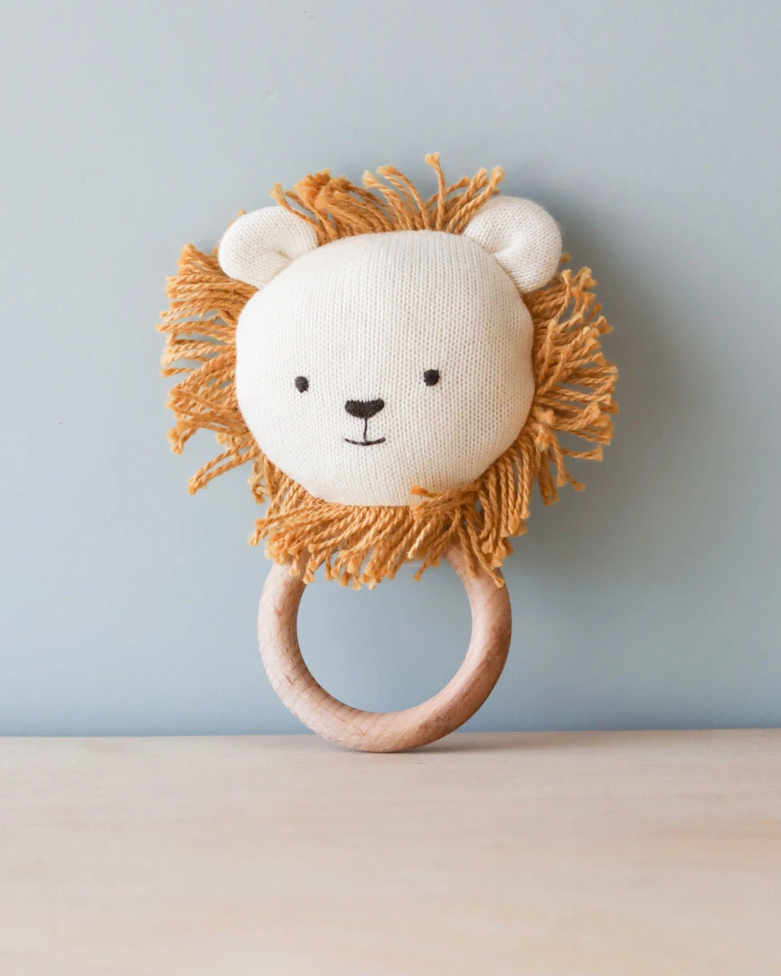 This adorable king of the jungle rattle is a gorgeous gift for a little one. It is perfect for a baby shower or for a newborn. It is beautifully crafted from knitted organic cotton.