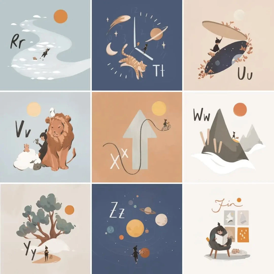 Join our characters Emme and Hamstarcat on their trip through the Alphabet! Each letter features an illustration and alliterated sentence that shares messages of creativity, courage, and mindfulness.