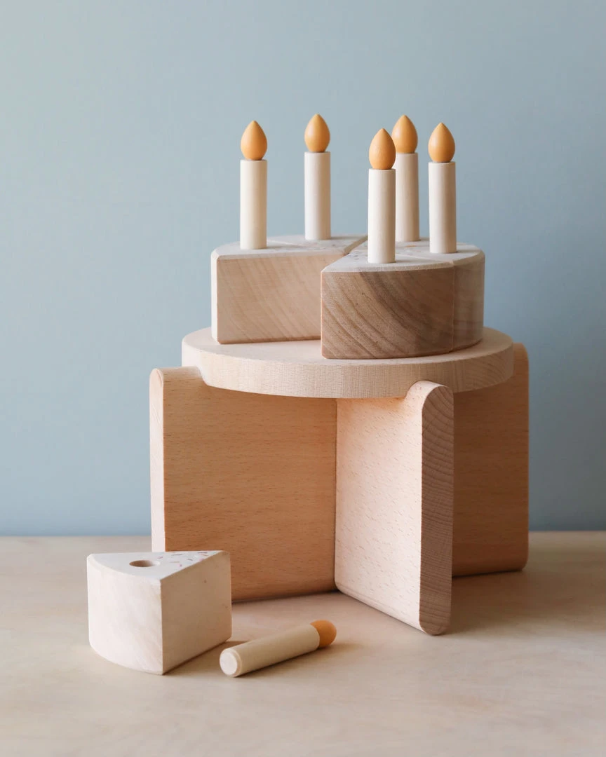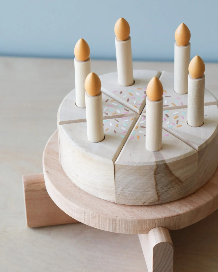 Handmade from birchwood and painted with non-toxic paint. Please note, each cake will have different knots and grains.