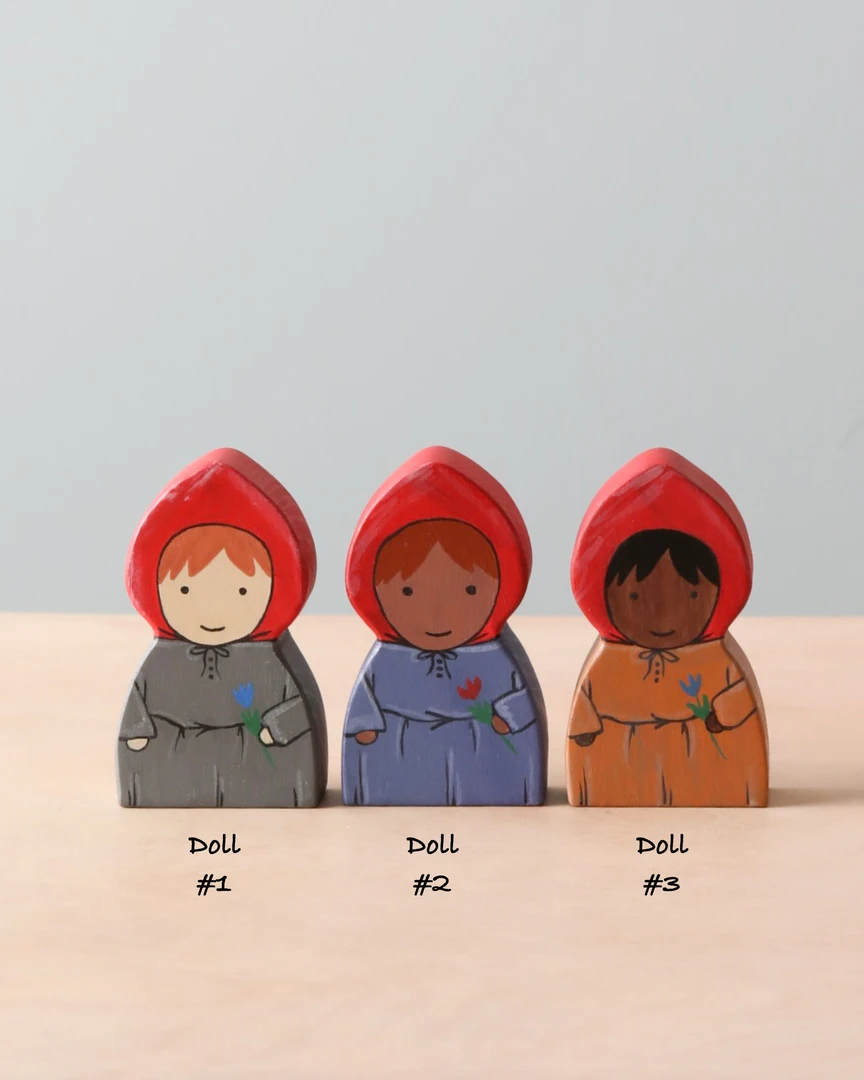 Let their imagination go wild with this handmade wooden mushroom house. The door is removable and behind it is a little wooden doll. Each piece is hand painted with great attention to detail.Â