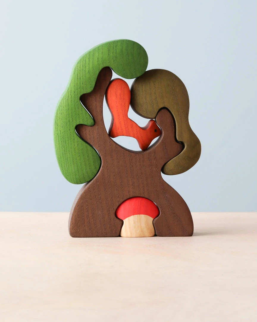 Handmade from ash wood and painted with water-based paint mixed with food grade flaxseed oil, which makes the paint semi-transparent to keep wood texture visible.