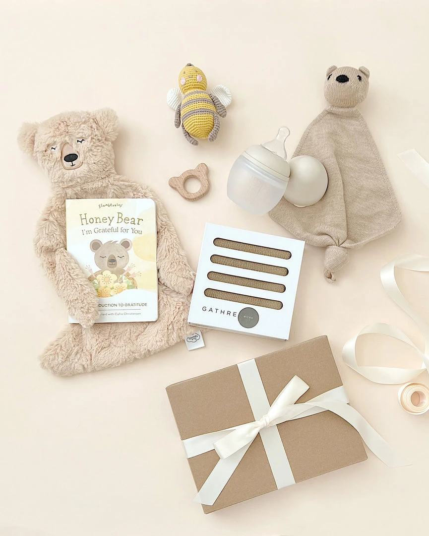 This gift box includes some of our favorite newborn items. This gift set is ideal for baby showers and expecting parents.
