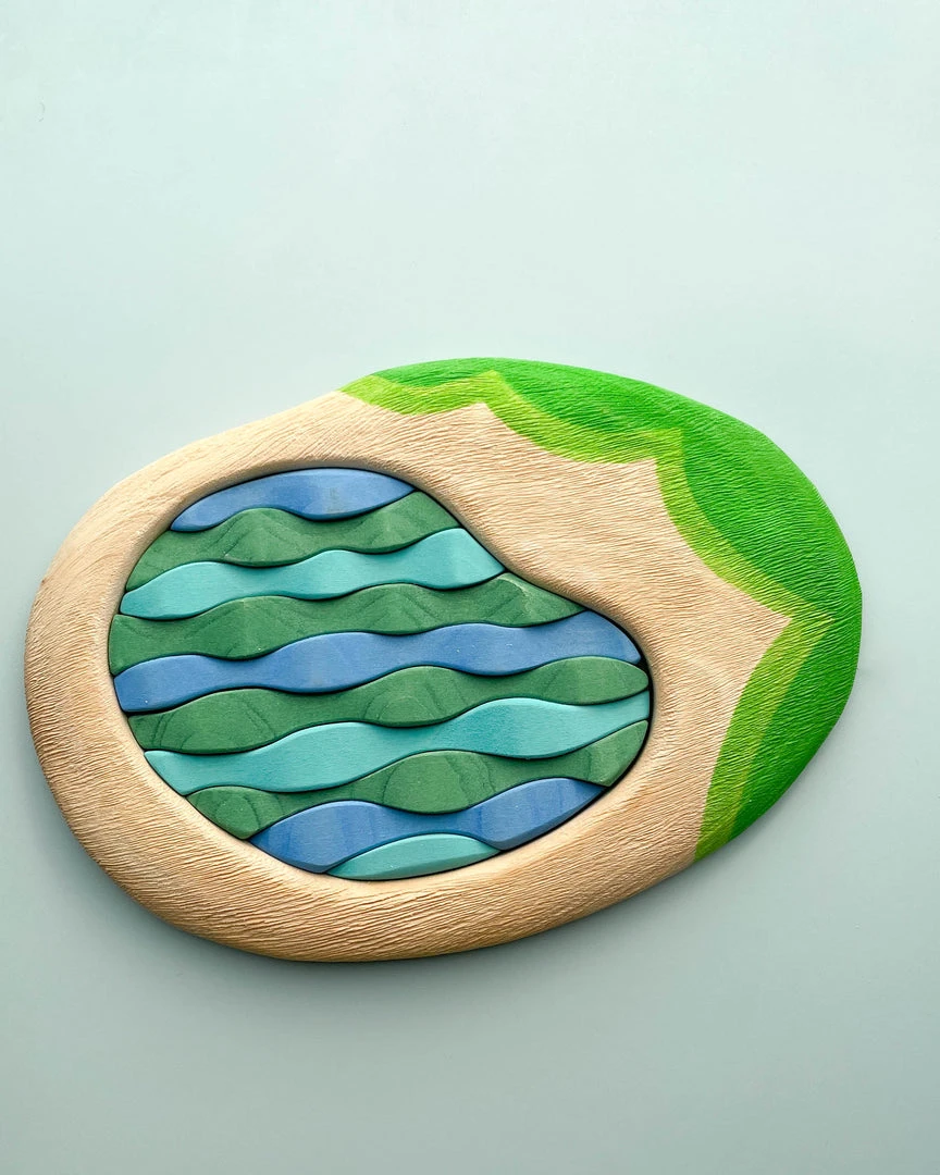 Handmade from maple wood and painted with non-toxic paint and coated with linseed oil.Â