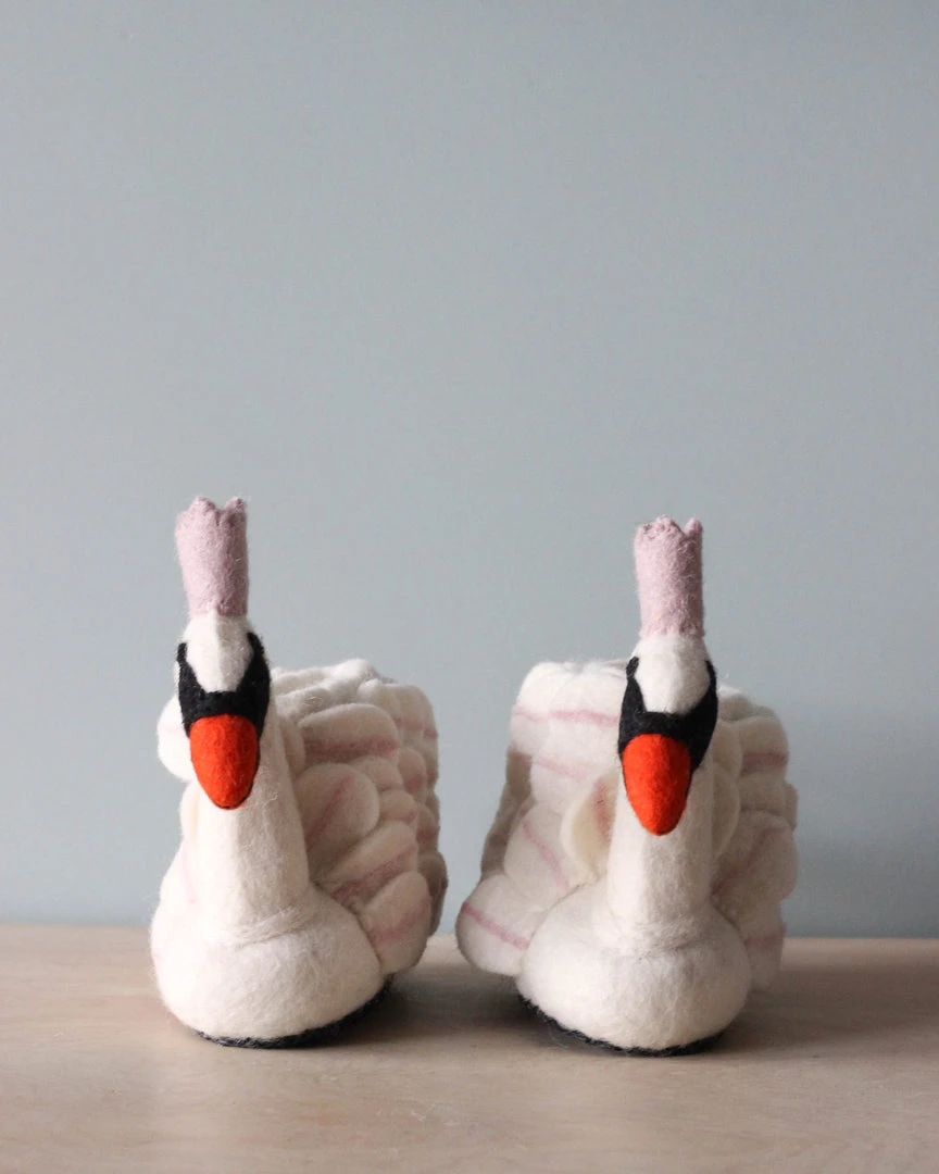 Handmade in Nepal, by artisan women who shape these slippers from wool, water and soap. The bottom of the slippers are made of suede.Â