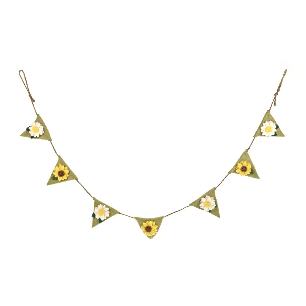 Handmade Felt Springtime Sunflower & Daisy Bunting Decoration Keep that lovely Springtime feel all year-round with our beautiful Springtime Bunting. Each daisy and sunflower have been lovingly hand crafted using wet felting techniques by our skilled artisans in Nepal and have been handstitched to each bunting. Our Springtime Bunting is 49″Â long and is completely plastic free!