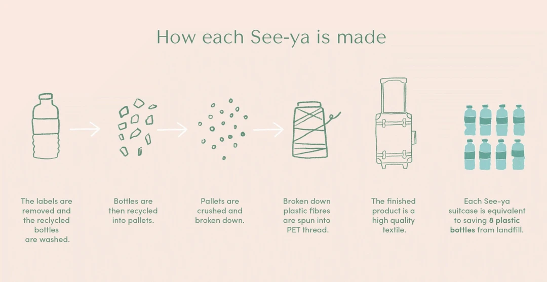 • See-ya Suitcases are made using recycled PET (plastic bottles)