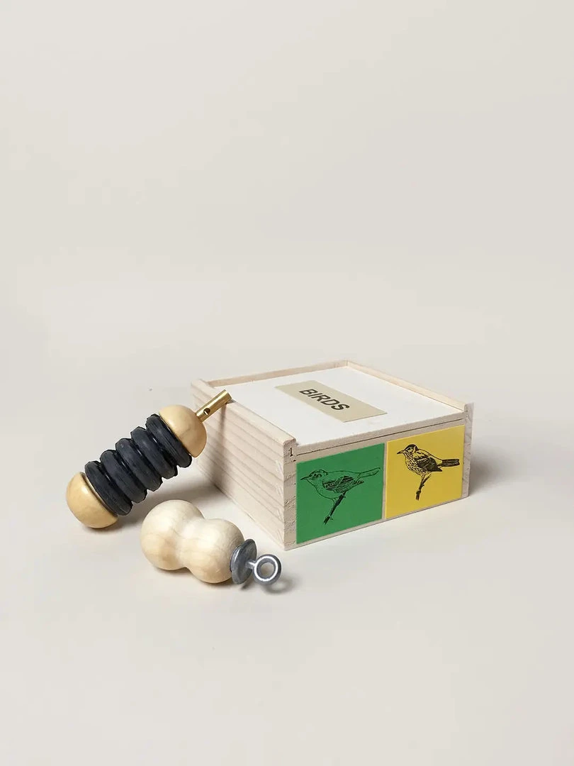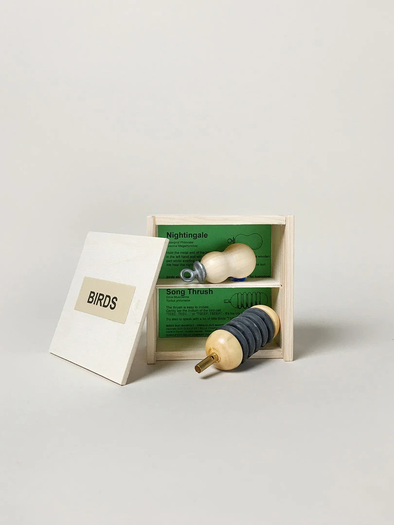 Quelle Est Belle company is an artisan bird call maker based in the Drôme region in France. Monsieur Francois Morel has been making these beautiful wooden bird calls since 1980. Each call is developed to carefully mimic real bird songs, helping you recognise the bird songs in their natural habitat and communicate with them. They are wonderful musical instruments for kids and grown ups alike.