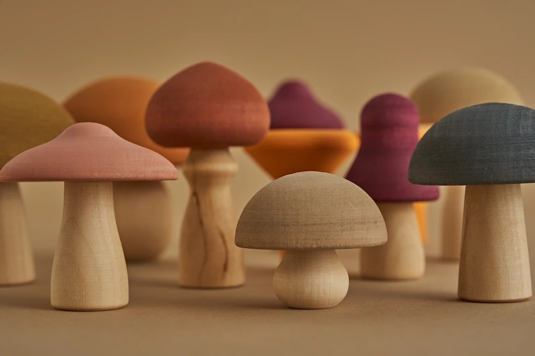Contains 11 mushrooms, handmade in Russia by Raduga Grez, from lime wood wit non-toxic paint.Â