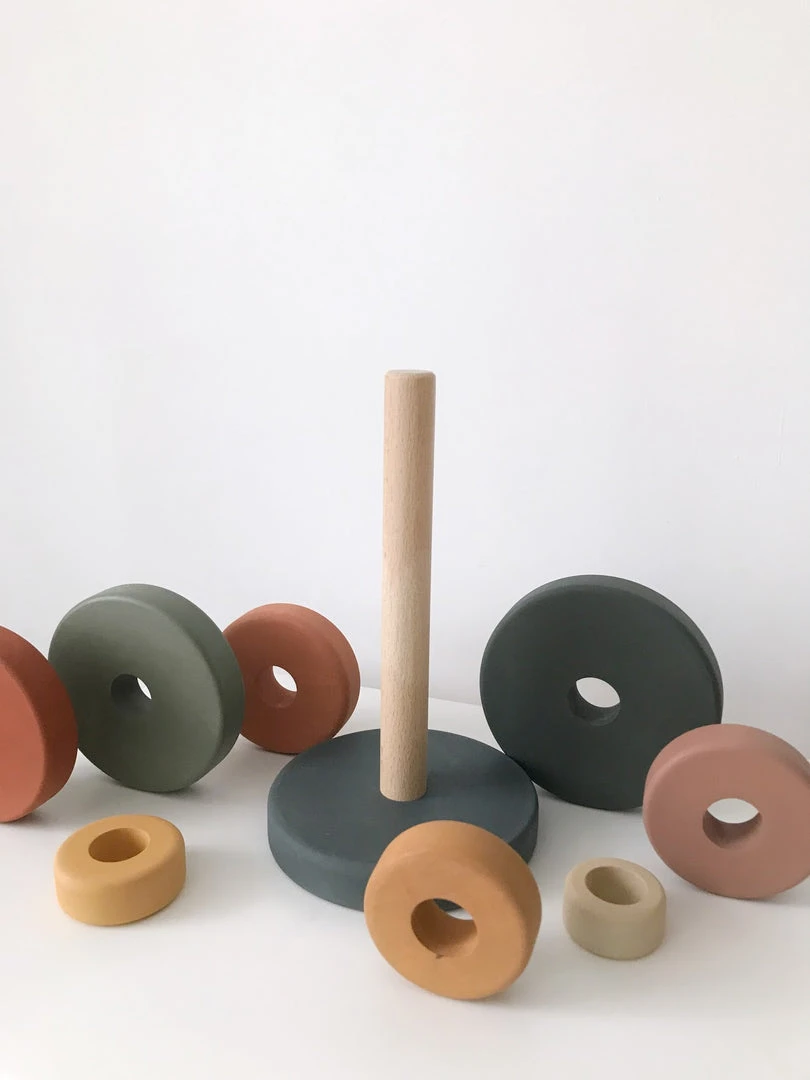 Handmade by Sabo Concept in Ukraine and painted with non-toxic, water-based paint. This stacking toy is great for hand-eye coordination.